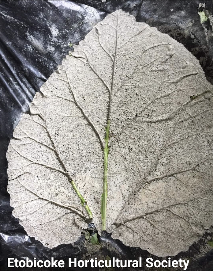 For a limited time, we are offering cement stepping stones beautifully made by an EHS member, Helen Whiteman. Each stepping stone will show the print of a Rhubarb leaf.